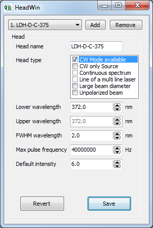 Head name can be set arbitrarily; however, we recommend that you adhere to the naming convention established by PicoQuant for heads of the LDH or PLS Series.
